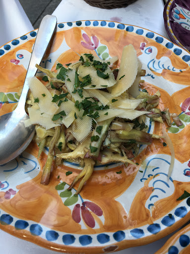 Absolutely delicious food in an adorable little restaurant near Etienne Marcel. Had an artichoke hearts appetizer that was quite unique. They were shredded like cabbage giving the dish the look of cole slaw. They must have been baby artichokes because they didnât appear to be cooked but were pretty tender. I got the eggplant appetizer as my main dish. I call it eggplant melanzana which is usually cooked, sliced eggplant layered with mozzarella and sauce. This had no mozzarella and was layered with generous amounts of Parmesan. The eggplant tasted like it was almost caramelized. Absolutely delicious. Hubs got veal Marsala. The veal was quite tender but the Marsala sauce was a bit too sweet for me and not quite winey enough. Still, it was quite good. It came with some very tasty cooked spinach. No room for dessert. We sat outside on a balmy early June night and enjoyed the food, the ambiance and the...
