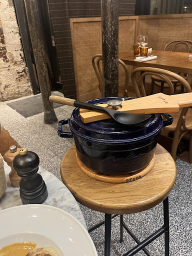 Great find. Was walking by tonight and it looked like a place I’d like. Walked in, no reservation but the hostess was great and seated me at the bar. Place was almost empty at the time and I thought a little odd, but it was packed within 30 minutes. No English menu but the the hostess and a waitress offered to help. I asked about one item and the waitress stated “ it is fantastic, you will love it”. So I ordered that (no idea what was coming) and the grilled octopus, which even my limited French allowed me to read. Great bartender, she could not have been nicer, got me a glass of Boudreaux and my octopus came out. Fantastic! Some of the best of had, tender but with a nice crunch from the grill on the edge. My surprise main course was a great ham and sausage stew. Perfect on a chilly Paris night. You could tell a lot of the crowd were regulars and the staff got along great. A lot of laughter and a few hugs between them as they did a great job keeping up with the large crowd. Merci for a great meal and helping this American stumble in and share in...