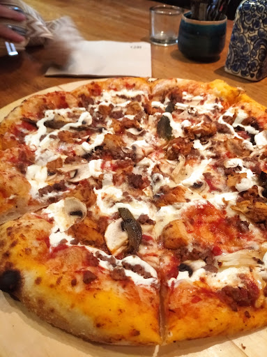 Super bonne pizza, un lieux très bien rangé, très propre. Classe et ça donne envie d'y rentré. Un peu moins quand il y a un énorme groupe de gens de personnest qui discute juste devant l'entrée.... C'est assez intimidant. Mais bon une fois rentrer , on rentre dans un lieux chaleureux avec un très bon accueil. Les pizzas sont un peu cher mais franchement ça vaut le coup car on sent vraiment que les produits sont frais et non surgelé. Les petite tomates cerises sont coupées a l'instant mm, les oignons sont frais aussi. Brefff une cuisine très bonne et la pâtes est très bonne. Pâtes fines comme en Italie. Et non des pâtes qui font 3 km d'épaisseurs. Ils mettent un sceller comme gage de qualité .... Histoire que personne ne les ouvrent pdt la livraison.... C'est bien je trouve. Une pizzeria qui est presque haut de gamme au niveau prestations et relationnelle. Bravo. Je félicite et je...