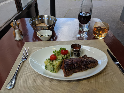 The entrecôte of beef was okay, although overcooked — almost no pink! But the sauce was perfect.