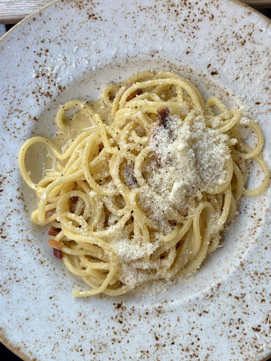 We took the carbonara with bucatini. It was delicious. The fresh pasta makes a huge difference: itâs al dente, and just slightly chewy. The carbonara was made using strictly egg yolk, pecorino and guanciale (cured pork cheek). Itâs super rare to find a restaurant in Paris which uses guanciale, and it makes a huge difference because itâs so much more flavourful and rich that just pancetta. The egg yolk made the sauce super creamy and it coated the pasta perfectly.