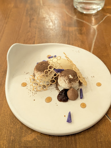 Read moreWe thought this place was very good, the service was great and they were very accommodating of our dietary needs, specifically, we are pescetarian. As pescetarians they gave us multiple fish courses, I think it ended up being 4 fish courses (we did the 5 course option), the first was a ceviche I think and then next 3 were all pan seared white fish fillets from different fish. We thought the fish was perfectly cooked each time, but felt that the filets were a bit under seasoned and bland, though I'll admit that I like my food salty in general so I wouldn't take a point off for that. The main reason that I'm giving 4 stars instead of 5 is that the 3 seared fish filets, while all perfectly cooked, were all so similar that by the end we were a bit bored and tired of eating them. I would say that we would recommend eating here if you want to try the multi course thing in Paris and you have dietary restrictions as they were more than accommodating but maybe don't do 3 seared fish in a row (we ate at a much more expensive place that we didn't think...