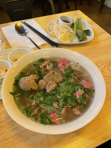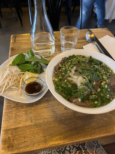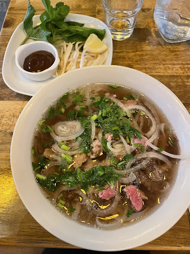En tant que vietnamien, je vous conseille de passer votre chemin. Appâté par les critiques positives, il se trouve que c'est une vraie déception. Sa bonne note est due au fait qu'il s'agit d'un des rares restos viet dans un quartier non asiatique ne comportant que peu de restos asiats. A Belleville ou dans le 13ème, il n'aurait pas dépassé les 3 étoiles... J'y suis allé 2 fois pour me faire une idée complète. 1ère visite: J'ai mangé sur place, un pho classique. C'était pendant le rush de midi, et ça n'a pas loupé: 15 min pour qu'on vienne prendre ma commande puis 20 minutes pour être servi...alors qu'on ne dépasse pas les 15 minutes pour un pho au pic du rush dans un bon viet bien rôdé. Le bouillon du pho est très clair et peu parfumé, on voit clairement que la base n'a pas mariné assez longtemps. Les nouilles sont passables, la viande n"est pas de super qualité même si ce n'est pas mauvais non plus. Par contre, les quantités sont plutôt réduites.