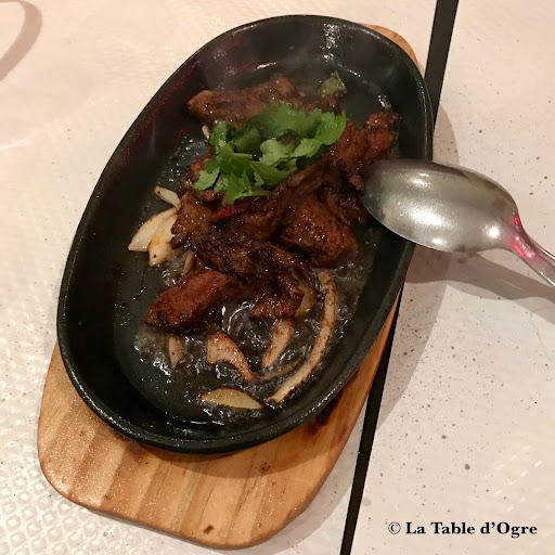 Un service plus que courtois vous replonge dans le cliché antédiluvien d’une soit-disant obséquiosité chinoise. Un plateau de viande grillé frétillant de graisse vous remémore que votre pressing est votre meilleur ami et Roberval la hantise de votre conjoint. (Je sais, Roberval, ce sont des balances à deux fléaux, pas des pèses-personne, mais je trouvais cela joli dans la phrase. On va dire que c’est une licence poétique…)