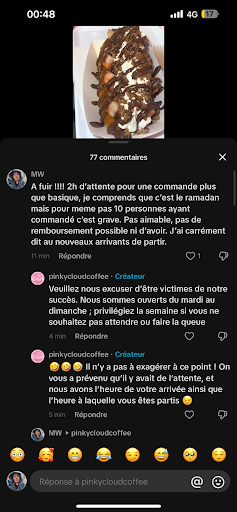 Fuyez, vraiment. Ils suppriment tout les commentaires objectifs sur Tiktok. Nous arrivons pour commander, on nous encaisse directement sans nous informer d'aucune attente. Apres 45 min d'attente, nous nous apercevons que toute les personnes arrivées avant nous n'ont pas été servies, nous demandons alors un remboursement ou un avoir étant donné que notre commande était loin d'être commencée, la personne qui nous a encaissé nous a répondu sans aucune compréhension qu'il était impossible de prétendre a un remboursement et nous dit d'attendre encore "15min", d'autres personnes étaient déjà la depuis presque 2heures sans être servis.. il mentait donc.