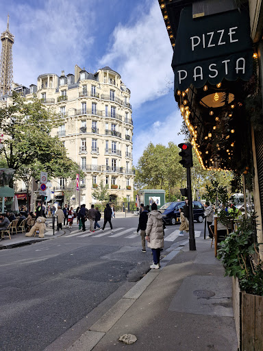 Our second experience at this establishment was an enjoyable dining excursion. The location was definitely not the best with it being located on a busy intersection but was overall not very loud or busy. The service was relatively โrelaxedโ and โleisurelyโ which we were looking for, but our food and drinks definitely could have arrived quicker. We ordered 2 pizzas which took around 25 minutes whereas other restaurants will have them out in 5 minutes. No complaints about the quality of the food or ingredients. Pizza was great. Pricing was fine for being near transportation, other Paris monuments and experiences.