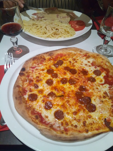 Read moreWir haben Pizza Salami und ein Salat mit HĂ€nchenstreifen bestellt, zum Trinken Cola und Tomatensaft..statt Cola hat der Kellner eine Orangina gebracht, naja geht halt auch, anschlieĂend eine Pizza Margarita mit drauf geplatzten risigen ganz billigen Salamidcheiben, die waren sogar teilweise kalt, Salat kann man als irgendwie-irgendwas mit viel Dosenmais beschreiben... ich habe meinen Sohn vorgeschlagen es nicht akzeptieren, er hatte aber schon Hunger, also Salami einfach weg gemacht und gegessen (ohne Salami ganz Ok), ich habe das gekochte HĂ€bchenbrust (sehr diĂ€tisch) und salatblĂ€tter gegessen. Fazit: Bedinging wĂ€hlerisch gut, bei uns etwa waren wir nicht da, Essen - no Go (vlt haben wir wasfalsches aus MenĂŒ bestellt), dafĂŒr knapp 25⏠bezahlt... also bitte bs wĂŒrde es empfohlen da Pizza ist dort gut, meiner Meinung nach einfache Geldabzocke da essen kann man...