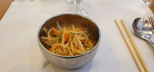 Read morePremière fois que je mange coréen, je ne sais pas si la salade offerte en ouverture l'est mais en tout cas le mélange pousse de soja et gingembre vous tonifie bien. Le Bibimbap (plat typiquement coréen lui) est juste fou, sérieusement le riz parfumé avec la viande de votre choix sa vous donne un mélange incroyable surtout que le plat arrive dans un récipient en fonte qui est ultra chaud (ça crépite encore très longtemps)