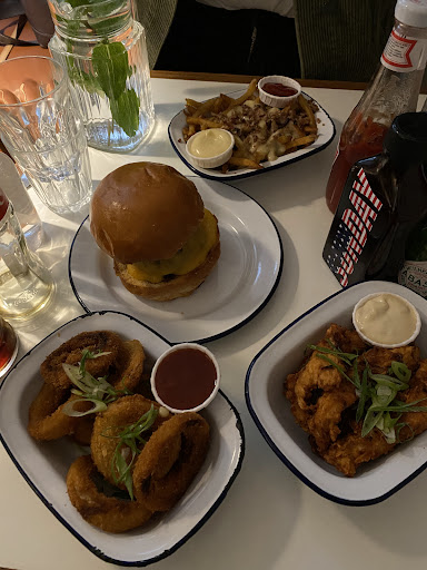 Food: we tried the return of the cowboy burger and it was really good. The patty was excellently cooked and juicy and succulent with a hearty beefy flavor. The homemade bbq sauce and choice of cheese matched perfectly. The smokey bacon was a bit of a let down wherever it was used, leaving a strange after taste that was slightly chemical. The bun was great. We also loved the onion rings that were crisply battered but not too greasy- this also applies to the abc fried chicken that was not too greasy therefore not too heavy. Their loaded fries were tasty as well being thin and covered with cheese, however again that bacon let it down. But i will say that the bacon isnt to my liking- my sister on the table with me loved it all so thay is likely my own tastes and preferences. Love the homemade bbq sauce though.