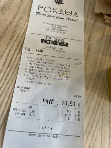 Read moreNot what I was used to with Pokawa. I’ve been eating at Pokawa when they first started opening in Paris and it was delicious. The quantities very generous as well… I tried ordering recently from Deliveroo and it wasn’t as good as I expected. My teriyaki hotbawl barely had any vegetables (a few ridiculously small brocolis, a few pieces of butternut not very tasty) and same with the cheese… It was mostly rice and quinoa. And I ordered the Medium one (+3€) It wasn’t horrible but all in all very disappointing and not worth the price ! And as you can see it looks nothing like...