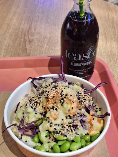 Read moreToday I had been to Forum des Halles and I was purpose to eat Poke Bowl at this place. I order Sunny Salmon and Hibicus Juice BUT..This Poke Bowl look so sad with a high price. Salmon is not fresh & so small. The rice is solid in a lump. A lot of purple cabbage & Edamame Beans has been put in bowl. Salmon is not fresh and less than veggies which you put in. The sauce is tasteless. The atmosphere at the store is so bad that there are too many chairs in the way. People who aren't customers are just sitting around or playing around feeling insecure. Staff...