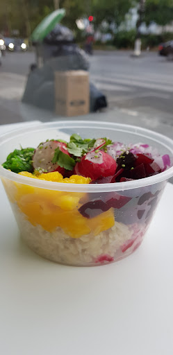 Read moreNous sommes venus à 4. La déception ! Je ne sais même pas par quoi commencer, contrairement aux autres leur riz n'est pas vinaigré..ce qui change quand même le gout puisque le riz est la base du plat. ensuite on nous demande de choisir, habituellement je prends de la mangue, n'en trouvant pas je leur demande si ils en ont, on me réponds que oui en me montrant la soit disant mangue, cela n'y ressemble pas du tout... mais bon puisqu'on me dit que c'est de la mangue je les crois et prends donc ça. résultat, en le mangeant nous avons tous constatés que c'était de la nectarine et pas du tout de la mangue...mentir peut etre dangereux si les gens ont des allergies alimentaires!!! ensuite ma soeur prends le menu et prends un cheesecake en dessert,arrivée au moment de payer elle ne comprends pas l'addition et demande le détail, on l'informe qu'il faut payer un supplément pour le cheesecake, sauf que ce n'est pas écrit dans la liste des articles en supplément, une employée qui est allongée sur la banquette lui dit que c'est comme ca point barre et autant vous dire que le ton était donné. payer ok mais dans ce cas là le dire d'une autre façon aurait été appréciable puisque cest eux qui ont fait l'erreur de ne pas l'écrire dans la liste existante. Nous n'avons pas du tout pour habitude de laisser un commentaire désagréable mais au vu du poke pas bon et de la façon dont la femme nous a parlé on a souhaité prévenir les autres clients potentiels d'aller ailleurs ! on y repartira jamais, dommage car apparemment celui du 16e est très bien. mais eux ni le lieu, ni le gout ni l'amabilité ne vaut la peine de se déplacer !!! il eciste tellement de bons poke dans paris, nous avons voulu tester,...