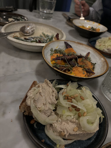 Read moreNice though pretty average. Got no “welcome” when arrived, no smile, no warmth. The waiter sat me at my table and left - without drink menu, as there’s no; just a QR code that I asked for before he suggested - meaning, I was sitting in the restaurant with no menu and with no attention for some time. Ok. Then, I had to start the food conversation, saying that I don’t eat fish - though they knew, as I mentioned it in a reservation. I’ve chosen the fish main and ordered a glass of rose. The waiter poured me a tasting of it and got distracted with another table. Without asking for my approval , he just poured me the glass (though the wine was pretty bad. Flat and not even floral or fruity, or mineral. Nothing. Just pink and containing alcohol). Ok, then came the starters. Zucchini and kiwi soup was delicious. Green beans with herring and peaches - tasteless. The sauce was pale, the peaches were unripe and not sweet. Octopus was cooked precisely, but lacked flavour as well. The aubergine cream at the bottom tasted like nothing. I asked for salt, and when I finally got it, the dish became eatable. Main course, sea bass fillet with red fish roe and leeks, was amazing; the plating - horrible. I could not take a bite of all parts of the dish together. Requires a spoon/different plate.