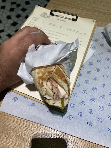 Read moreI’ve heard the hype of this place from London and on Lebanese social media, so told myself to give it a try whilst I’m on my trip to Paris. I arrived around 7:30 pm, The service was fast, efficient and pleasant. I ordered the chicken and veal shawarma and asked if there was a place to sit inside the front of the restaurant, I was told that there is no room to accommodate and that I had to sit outside on the tables, so I asked are there any heaters provided since it’s pretty cold outside. The waiter responded with that’s all that they can do. So I barged in the restaurant to take a glance and the back of the restaurant seemed to be empty, so I was told I could sit on the bar where the other waitresses were packaging the baklava. The restaurant manager then told me that I could sit on a table towards the back of the restaurant, however the table behind me is reserved for 8:30 pm, I don’t see the need or the importance of the comment.