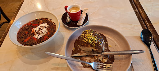 Read moreC'est bien et l'intérieur est sympa. Par contre l'attente est longue, enfin moi je suis en vacances donc je m'en fous, mais mieux vaut arriver un peu avant midi si on a des réunions à 14h. Les plats dans les formules midi sont assez simples et rapides à préparer je pense, donc c'est pas vraiment justifié que ça soi aussi long. Mais si apparemment ils ont eu beaucoup de monde en même temps, mais non ils doivent s'améliorer sinon ils vont souffrir pendant le service et les clients risques de ne pas revenir. Donc les autres ont du partir pour aller en réunions à 14h, mais tant mieux pour moi j'ai eu deux desserts et un café offert. Les desserts sont très bons. J'ai pris à la base la formule à 24 euros avec deux petites assiettes, fêta rôti et tataki de boeuf, j'ai bien aimé la fêta, quant au tataki je n'aime pas ça de manière générale mais à chaque fois j'oublie que je n'aime pas ça, ça me fait une piqûre de rappel. Et profiteroles en dessert. Donc 4 étoiles parce que les desserts étaient bons et le serveur est très sympathique, même si il sera fatigué après le service. Et aussi parce que c'est moi qui ai choisi le restaurant et je note toujours bien quand c'est moi qui choisi, et...