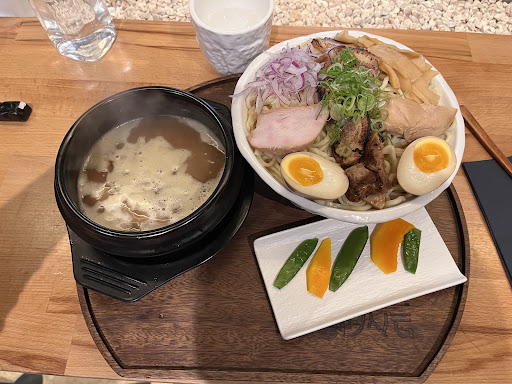 J'ai pris le "Pai Tai Kuro Ramen" à l'ail noir. Ail noir que je n'ai pas reconnu dans le plat. D'ailleurs, je n'y ai pas reconnu grand-chose : un bouillon fade, clair et sans goût attendus. Où était la richesse ? Mon ami a pri le Tori ramen. Pour lui c'était différent. C'était de la sauce soja dilué dans un bouillon quelquonque. Littéralement. Aucune harmonie, ça aurai pu être un Soyu ramen un peu louper mais pas du tout. Je ne sais pas ce que c'était. Le chashu était sec, les œufs Tamago avaient une cuisson parfaite mais n'étaient pas marinés. Mais vraiment ? Non marinés ? Qui fait ça ? Il y avait tellement d'incohérences dans ce plat que je me demande s'il n'y a pas eu un souci dans le processus de préparation... Une peine de cœur pour le chef qui, tête en l'air, me donne des œufs non marinés alors que, visiblement, en sortant les œufs sur le comptoir, ils l'étaient !