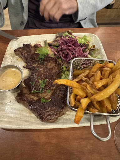We ordered the Entrecôte, chicken burger, Paris burger and chicken poke bowl. Everything came out very fast and was good quality food. I was a big fan of the chicken burger and the steak was a nice flavorful dry aged rib eye, cooked to the perfect temp. Not all brasseries have gotten medium rare right, so this was great.