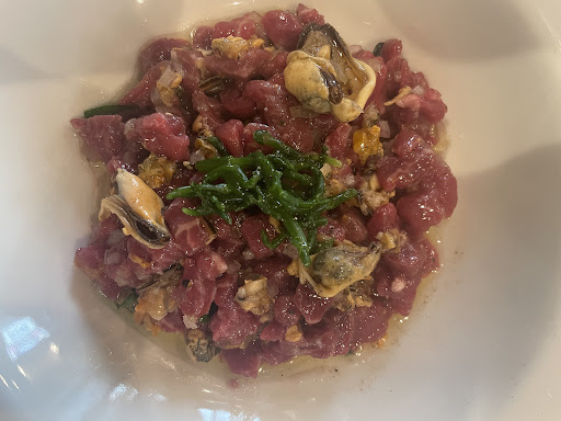 Read moreReturning to Paris after years of pandemic exile, I was most excited to eat at Restaurant 52, where I've had only excellent and inspired meals in the past. Tonight the pea hummus and paté campagne were interesting and tasty in every regard. The wines (Beaujolais and Cote du Rhone) were deep and interesting. As we waited for our plats principals I was anticipating continuing this momentum, but the lentils lacked distinction. The tuna was tough to cut and didn't cohere with its apricot glaze; then I bit down on something hard and plastic-feeling in the wheat that accompanied it. I switched my main plate to Cannelloni of eggplant with ricotta, which came cold, although that wasn't indicated on the menu as far as I could tell. As with the other two mains I tasted, the ingredients were of high quality, but the combination didn't elevate any of their individual flavors or textures.