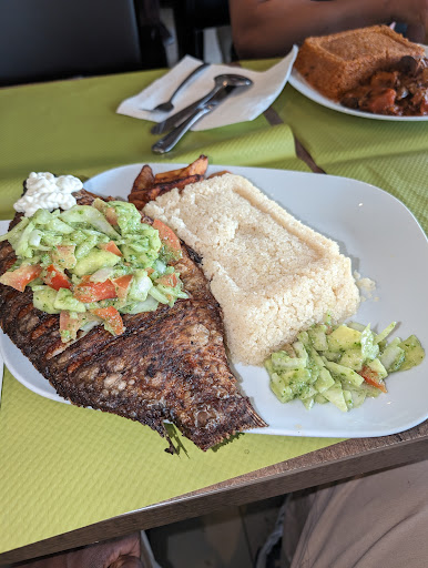 Read moreJe suis rentré par erreur dans le restaurant croyant que c'était un resto de couscous (le néon de l'enseigne prète à confusion, c'était peut-être le resto d'à côté). Cela dit, j'aime la nourriture africaine donc j'ai pris un thieb poulet. En patientant pour mon plat j'ai lu les avis et notamment les commentaires sur la quantité qui n'est pas énorme. Gros mangeur, je m'attendais au pire. C'est vrai qu'il y a peu de poulet (un haut de cuisse pour moi) et beaucoup de riz, mais me concernant dans le thieb ce que je préfère c'est ce riz brisé avec la sauce donc pour moi c'était très correct, bon et abordable (10€). J'ai entrevu la cuisine et ça fait un peu en mode "foyer" mais je n'ai pas eu de souci.