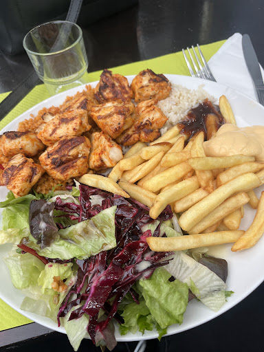 L’assiette était très bien garnie j’ai même eu du mal à la terminer. Les accompagnements : frites, blés et riz étaient tous très bons, bien assaisonnés. La salade était aussi bien garnie : tomate salade choux concombre.. L’assiette a été servie avec du très bon pain. Les prix sont plutôt élevés mais au vu de la quantité et de la qualité c’est très correct. Le service et le personnel est au petit soin, c’est très agréable. Le service a été très rapide. Je reviendrais tester le plat du jour. Je...