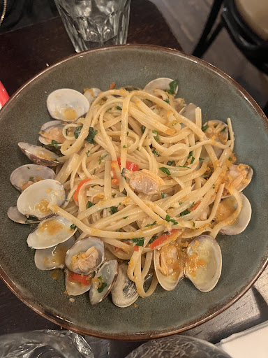 I would actually recommend trying the pasta vongole with clams; I really enjoyed it. The pasta vongole is a delightful dish characterized by perfectly cooked pasta tossed in a savory clam sauce. The clams add a rich, briny flavor that enhances the overall taste of the dish.