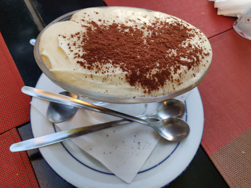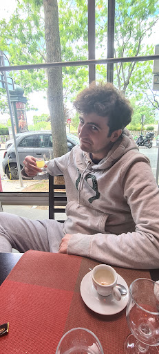 How my how my. This place was straight out of a movie scene in Paris. The decoration, the way they take the order and even the way the food taste was nothing I had before. I was attracted to their pizza menu and also the beef and fries. The pizza I had was salmon, first time trying it and not my last for sure. The pizza was so flavorful and so delightful. I couldn't stop eating it The beef was nice and tender, tres cuit as I wanted. I later had a nice artisanal water bottle, which was so flavorful and but light. For design had cafee au lait and their creme brulee. It was so nice and well made. You can hear the crack in my video. Thank you so much for having us, it...