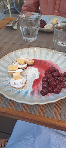 We came here because of the good reviews, but left incredibly disappointed. First, we felt lucky there was a table, because we didn't have a reservation. The starter (cucumber and kiwi salad) was ok, but didn't have a lot of flavor. The main course was even worse, orzo with seafood which was incredibly bland and they couldn't bother to remove the waste vein from the shrimp. Being Coming from the Netherlands, dessert was probably the most disappointing: poffertjes (tiny Dutch pancakes, which the waiter called "Belgian waffles") with cherries. These things can be bought in bulk for €1. They were cold which meant the butter didn't melt. They also didn't even bother with flavour for this dish. The wine was good, but basic and they didn't have the "cheaper" €11 euros wine and the waiter brought me an even more expensive glass.