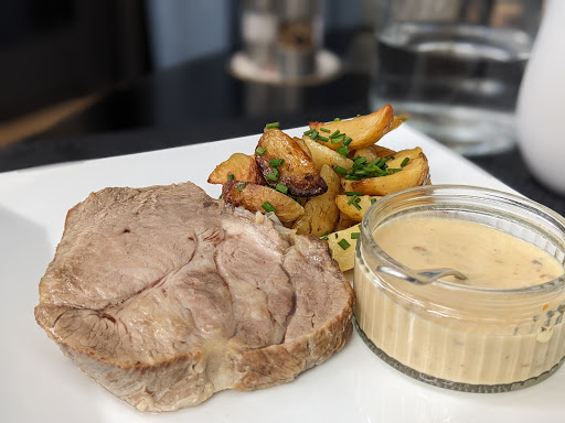 Ensuite, nous avons opté pour le filet de bœuf en plat principal. La viande était tendre, juteuse et bien saignante comme je l'avais demandé. Elle était servie avec un bon gratin dauphinois et une sauce riche et savoureuse. Chaque bouchée était un vrai délice et nous nous sommes régalés.