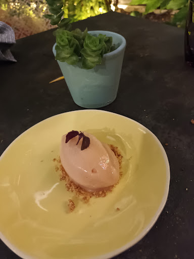 My starter, the Goat Cheese Ravioli in a Sage broth and Olive Oil; balanced flavors freshly made ravioli. For main course I ordered the Salmon with Poached Rubbarb and Grilled Leeks; tasty, flaky, slow cooked salmon, perfect portion. For dessert, the best part of the meal, i ordered the Lemon pastry with Basil Gelato with Ginger Gel, all I can say, leave room for dessert, Yummy!!... dessert you find at a Michelin rated restaurant!!.. Once again my second visit was as good as my first, service was very attentive and the food taste and presentation did not...