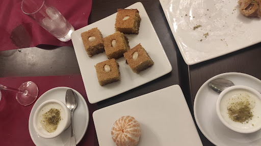 Maden var utrolig frisk og velsmagende. Vi prøvede et varieret mezzé, hvor især mutabbalen skilte sig ud med sin delikate smag, og kebbe naye var af fremragende kvalitet. Brochettene var perfekt tilberedt, hverken for lidt eller for meget, hvilket ofte er et problem andre steder.