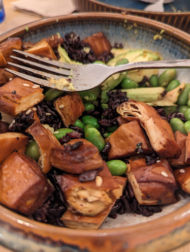 However, the experience improved with each main dish. The mango curry was tasty, and the Buddha bowl was very nice. The desserts, including the chocolate and peanut butter mousse and the chocolate cake, were very enjoyable with an intense chocolate flavor and a nice crunchy element from the caramelized rice. Additionally, the restaurant serves tasty...