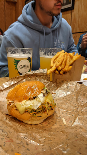 Bref j'ai pas vraiment Ă©tĂ© enthousiasmĂ©e par l'endroit, c'est pas trĂšs beau, mĂȘme au fond de la salle j'avais un gros courant d'air froid, c'est bon mais sans plus, ça va que ça coute que 10⏠pour un burger et un accompagnement. Un Ă©niĂšme spot pour manger vite et pas cher.