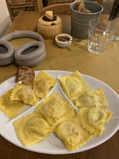 Read moreNice, cosy place. Wasn’t clear on the menu what the vegetarian options were but the waitress was very helpful in guiding me with what to order! The food I ordered din the photo was €16.50 (three types of ravioli) I liked 2/3 of the types. Seemed expensive for the portion, and I’m not sure if it just Italian food that is quite oily but it was very oily. I would potentially visit again just ordering the one ravioli (pumpkin and nut one was my favorite...