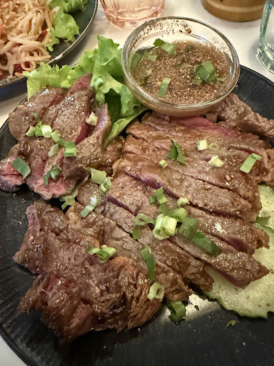 ExpĂ©rience mitigĂ©e pour ma 1ere fois chez Sep Lai. Je mâexplique : En ce dimanche 23 juin 2024 nous avions dĂ©cidĂ© avec ma compagne dâaller Ă lâasiannstreet festival Ă la pagode de Vincennes. Comme dâhabitude en France, ce genre de festival est mal organisĂ©, avec des queues de plusieurs 10aines de mĂštre pour acheter de quoi se restaurer. Du coup on profite de ce dimanche pour tester un resto que je suis depuis quelques temps sur Instagram (comme quoi câest utile de diffuser sur les rĂ©seaux sociaux quand on a un Ă©tablissement Ă promouvoir. J appelle, je rĂ©serve, puis regarde le menu ici mĂȘme. Et lĂ je mâaperçois que le weekend câest brunch. Vu quâon a rĂ©servĂ©, on y va quand mĂȘme. Formule Ă 29âŹ, un plat, un dessert, un verre dâorange pressĂ© et thĂ© ou cafĂ© Ă volontĂ©. Je prends l assiette lao avec le tartare de saumon laotien (le tartare, pas le saumon) et ma compagne le poulet. Lâassiette est jolie mais pas assez de papaye, du mesclun et des edamame qui nâont rien Ă voir avec le Laos. Et surtout pas de piment, du tout. Jâen ai demandĂ© et ai pu en ajouter. Câest bon, mais ça ne mâa pas fait voyager, ce qui est un peu le but. Nez en moins (đ), ça cale, avec le riz gluant, Ă moins que ça soit nous qui ayons mangĂ© trop vite. En dessert Jâai pris le pancake au pandan et mon amie la gaufre au Nutella. Câest copieux, enfin yâa surtout du volume avec la chantilly. La deco avec les fruits est sympa mais les framboises et les myrtilles ça fait pas trop Laos. La mangue est cuite sur le pancake et je ne peux pas savoir si câest de la mangue bateau ou avion. Puis les litchis en boĂźte ⊠sans commentaires. Bref ce restaurant vous fera dĂ©couvrir le Laos si vous nây avez jamais Ă©tĂ© ou si vous ĂȘtes allergique au piment. En gros une bonne adresse pour Farang. Peut-ĂȘtre y retournerai je un soir pour vraiment tester les spĂ©cialitĂ©s qui mâavaient tant fait saliver âŠ...
