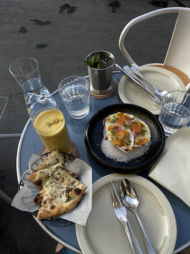 MOCKTAILS Jeera Masala Soda - the masala flavor was extraordinarily well balanced! Holy Cow - extremely rich and creamy. Both tasty and refreshing in their own way. STARTERS Saint-Jacques Gunpowder and cheese Naan. French cuisine meets India????? Such a beautiful serving with its big flavor using seasonal ingredients and satisfying play of textures and colors. MAINS Tawa Lamb Chop Was absolutely beautiful and admirable dish to eat. This is a MUST try, when coming here. Dorade Goan Roast Just look at the pictures.. fish beautifully deboned and put together again. Tangy and powerfully spiced masala sauce and nutty crumb on the fish skin. Raita Best I ever had. Well balanced flavor - hint of sweetness possibly from chutney. DESSERT Panjiri Crumble. Classic apple crumble - smell was something else..! Slightly spiced apples, buttery and nutty crumble and the rich and decadent notes from the safran ice cream.