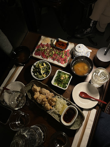 Read moreNouvelle adresse dans la rue des Ciseaux. Un complĂ©ment au restaurant Tsukiji qui ne propose que du cru. J'ai pu reserver facilement pour 8 personnes via Google. Je recommande cette adresse pour quiconque souhaite dĂ©couvrir autre chose que les sushi/yakitori/ramen. Ici, il y en a pour tous les goĂ»ts. Les portions sont Ă partager, mais la vaisselle est un peu grande pour optimiser l'espace des petites tables, ce qui rend l'expĂ©rience de dĂ©gustation un peu fastidieuse. La cuisine est assez fidĂšle aux plats typiques que mangent les vrais Japonais, mais elle manque un peu d'Umami (assaisonnement relativement lĂ©gers, manque un peu de sel, le radis daikon mĂ©riterait d'ĂȘtre cuit dans son assaisonnement pour plus de saveur et de tendretĂ©). L'accueil est chaleureux, avec quelques petites lacunes (rĂ©activitĂ©), mais toujours avec le sourire. Le kinpira gobo/salsifis est bon, le poulet karaage Ă©galement, le riz de bonne qualitĂ©. Le meilleur Ă©tait le sashimi de saint-Jacques...