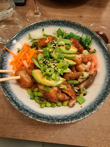 The Pokémon Bol contained lightly fried, breaded chicken on top of piles of avocado, seaweed, mushrooms, cucumber, pickled ginger, and carrots. So many flavors that could each be tasted separately but went well together.