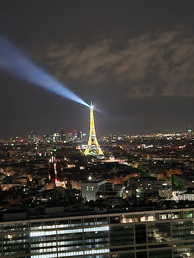 🍸 Our drinks arrived in about 10 minutes, giving us plenty of time to snap some amazing videos and pictures of the Eiffel Tower. The Espresso Martini was quite good and generously sized. The DJ was spinning funk, which isn’t usually my jam, but I enjoyed it. Watching the Eiffel Tower light up (it sparkles for 5 minutes at the top of every hour until 1 a.m.) was absolutely magical. 🌟