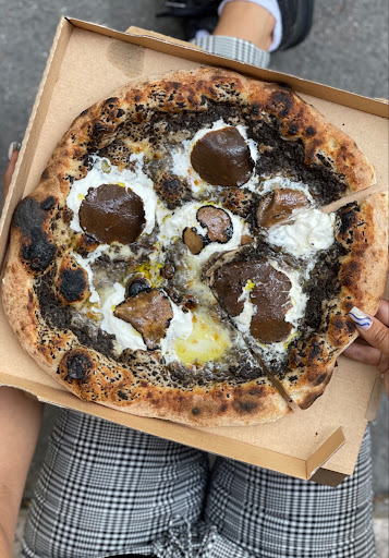 La pizz’ à la truffe ! Déjà, elle est différente car, malgré des bords bien gonflés, elle reste très légère et digeste ! Ensuite, parce qu’ils sont généreux en crème de truffe et leur fior di latte est l'une des meilleurs qui existe à Paris ! Puis, parce la cuisson est vraiment bien maitrisée, que leur stracciatella est pas mal du tout et qu'ils ajoutent des copeaux de truffe par dessus... Alors tu valides ? Nous oui !
