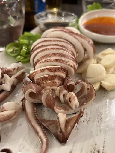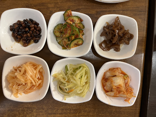 The food I don’t even want to start, while I have to say the kimchi soup was not bad, the chicken tasted like it was laying there for weeks. Literally dryer than a piece of wood, and 95% bone. The kimchi pancake had like a rubber texture, and also arrived after 2 minutes, so I’m pretty sure they are just warming up the food. Banchan were also flavorless. Especially the kimchi… We went because there were some good reviews, but after checking again these were all from years ago. After all just don’t come here I guess, eventho I feel bad to say it since the waiter was...