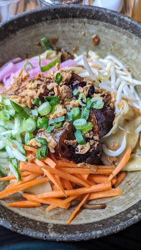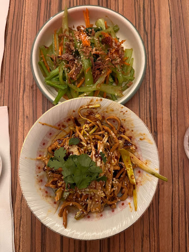 We absolutely loved the tofu salad and the biang biang veggie noodles. The mochi dessert was the perfect finisher to this tasty spread.
