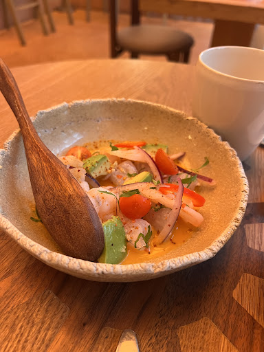 My daughter and I went for dinner at Tio. A great plus was that our dog Tommy was welcome. He was provided immediately with a bowl of water. Which was very kind. We were seated at a corner table with plenty of space for Tommy. The service was kind and accommodating. The menu is not very long which I love. The simpler the menu the better the food in my opinion. And the food did not disappoint. We had the fish ceviche as a starter. Which was bursting with flavour. Sweet and sour just a bit of everything. My daughter even spooned up the leftover sauce not to spoil anything. For the main we shared 4 tacos: the veggie, the chicken, the shrimp and the fish taco. All great. The shrimp one was a favorite though. And for dessert we shared the 3 leche cake. Which was the perfect ending of a great meal. For drinks we tried the spicy mango cocktail. Loved the spicey taste! And honestly the first cocktail we loved (as 2 non-drinkers) and one that we would order again.