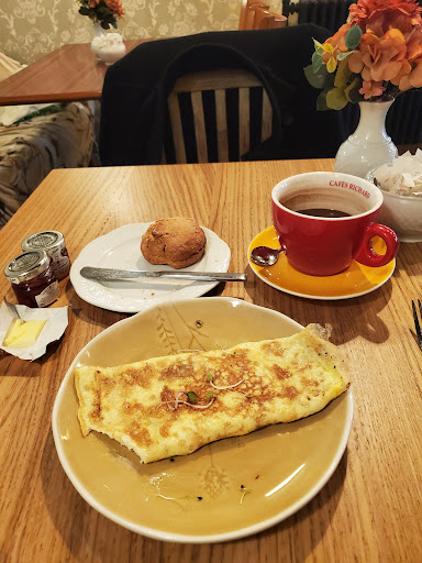 Maybe I went at a bad time but the reception of the older woman was cold after I spoke in English. I felt unwelcomed. I sat for a while as she ignored me, I almost got up to leave. The coffee, capuccino was watered down and kind of cold. Then the salad that came with the omelette was slimy and withered. The only redeeming quality of my experience was the male waiter who took my order after his smoke break. He was kind and tried to make me smile as I was clearly disappointed. I practically flew out of there. Just my experience, I'm sure it's not a bad place just make sure you're fluent in French to receive a better reception unfortunately.