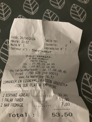 Ā Ā Ā Read moreWe went to the restaurant in person to place a delivery order back to our hotel on 28th Nov2015 at 8pm. There were about 6-people dining-in so place was quite for a Saturday night. Of the 2-staff we interacted with one was friendly and helpful but the other was curt and a little rude. We ordered 3x currys, veg-rice, bhaji's and a couple of naan breads. The cost was euro-42.50. I told the guys 4-times to send the food with disposable plates and spoons but when the order arrived these were missing. The food itself was fresh and tasty. a little on the spicy side for me but my family really enjoyed it. The portion sizes were good with the currys and rice being sent in two-thirds full A500-size microwave containors. In hindsight we ordered too much for 2_adults and an 8-year old child but the guys didn't advise us that this would be too much even though we asked about the quantity. The place is a 12-minute walk from the Eiffel Tower. Would rate higher IF the guy who took order was not so defensive and a little more positive and customer oriented. Would also add a star if they had remembered to send the disposable plates and cutlery that I requested and they agreed when we...