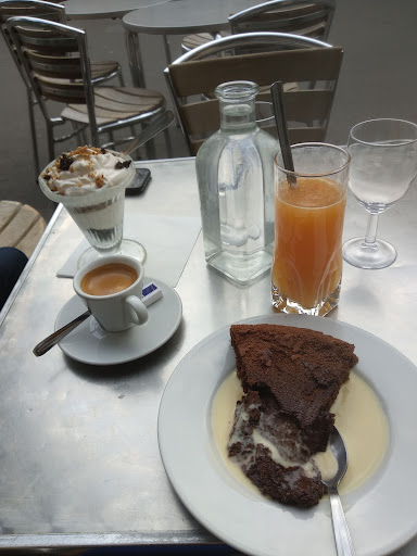 Read moreL'endroit est sympa, avec une terrasse (certes juste à côté du rond Point...) et un personnel très aimable. Attirée par l'inscription 'Salon de thé' puis les photos sur Google, je suis venue avec un ami pour le "goûter". J'ai été un peu déçue par le choix des gâteaux : même s'il y du choix (crumble, clafoutis, fondant, tiramisu, tarte), je m'attendais à des desserts peu plus originaux, c'était très classique et j'ai trouvé le prix élevé (6€, trop cher pour que j'en reprenne une seconde fois). Le fondant était pas mal du tout ceci dit. J'ai également pris un jus pressé orange/pamplemousse/citron : très difficilement buvable pour quand même 5€, notamment car hyper acide... Je pense que c'est un endroit plus propice pour déjeuner que pour un instant...