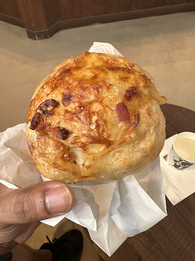 Let’s start with the Petit Pan - Soft, not too oily when heated and it was so light and fluffy to eat. The bacon was crispy and the entire bread was a great start! Then the Bagel.. one of my highlights from today. It was so soft (what is the secret seriously) and from what I tasted , it had a brioche texture which even when the bagel was cold still was soft and delicious to eat. The Turkey didn’t feel bland and the Mayo and Cheese didn’t overpower the entire bagel, each condiment complimented one another and it was really delicious. Shout out to Ralph for the suggestion because he did not disappoint. And finally we have the dessert. I haven’t tasted many fruity pistachio desserts so I was a little picky, however one of the lovely girls, Olivia, suggested that it was her favourite so I trusted her opinion. From the first bite of the eclair I had multiple flavours playing around in my mouth, starting with the icing which I believe was a Raspberry? It had a little sweetness and a bit of a tanginess which worked well, and then we have the highlight, the pistachio cream. I could just sit somewhere and scoop that cream and eat it all day. It was smooth, sweet and felt similar to Nutella (not the exact texture but could be from the same family). Then we have the actual pastry.. I know I’ve describe soft like twice already but I can’t stop describing that all these pastries are so fluffy, which also made me wonder how it held all the cream without breaking apart easily! Another 10/10 dessert.🤤🥐