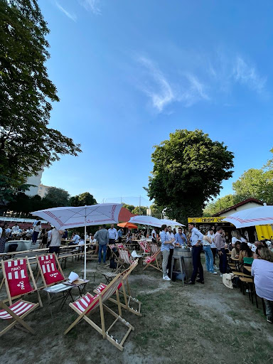 Le site est bien aménagé, avec de nombreux espaces pour s’installer : banquettes en palettes avec coussins, grandes tables façon pique-nique… Il y a aussi des zones ombragées, ce qui est appréciable quand il fait chaud. Les toilettes sont accessibles facilement, et le personnel est très sympathique.