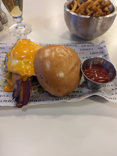 Read moreA dad-son trip to Paris, and son wanted to eat burgers. So I found this place. The ride up the escalator is fun, and the entry of the restaurant looks nice. Even though the hotel lobby looks much like an airport terminal with travelers hanging around waiting for their delayed charter flight, the entry to the Umami Burger restaurant is bright and cheerful. We were there at a slow moment, which was good for service times, but maybe did not do the atmosphere any good. We really liked the burgers. Surprising combinations, tasty, rich and huge portions. I had the K-Town Tuna which was good, but the Tuna was overcooked. Service is amazing. Our waiter was friendly, kind, helpful and interested. My son wanted to give this place 5 stars, but the tuna and the empty hotelbar feel took a bit...