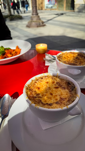 Read moreWe were pretty hungry and looking for a place to have lunch. This place seemed like one of the few restaurants nearby that offered lunch. We made a big mistake by not reading the menu first. The place looked a bit confusing as the whole interior was pink, red and white with lounge seats, trying to look like a night club. There were a lot op people so we assumed it would be good. Little did we know... The price was really expensive for what you're getting. A Caesar salad, only lettuce, 3 small pieces chicken breast with a lot of dressing, was almost €20,-. A slice of bread with avocado spread, creme fresh and piece of smoked salmon €17,50. A cup of tea, €8,-. I guess that's the price for eating at the Champs-Élysées.