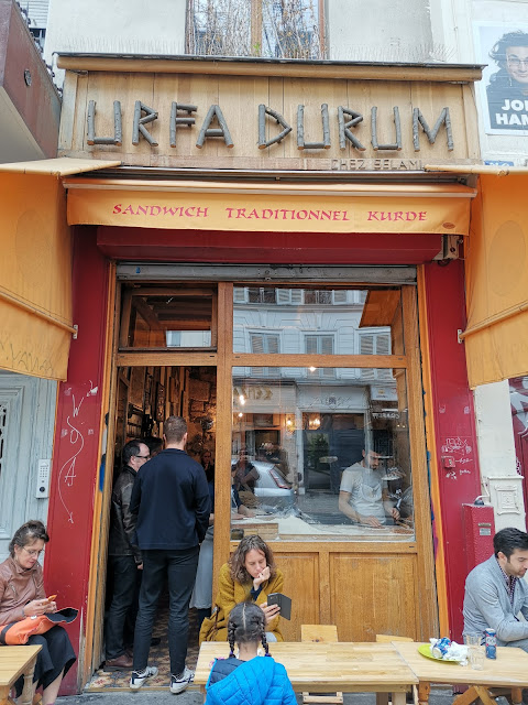 Read moreAfter being convinced by a fashion mogul friend to turn a 2-hour layover into a 1 night stay in Paris, we were on a speed run to hit all the possible spots. Our first stop for food was Urfa Dürüm as my buddy was staying right by here. Although I was a bit skeptical as I was more in the mood for some quality Steak Frites as opposed to a Kurdish sandwich on my one and only night in Paris, he told me this was a spot Bourdain frequented. I was sold. He's a good salesman and I'm an easy sell. He also said we were short on time as we had to get to a models birthday party so... yeah, easy sell. My skepticism was even further buried into the Parisian soil when we walked into Urfa Dürüm, as they were making the doughy flat bread from scratch right in the window. My stomach was ready. I opted to hit the lamb button. It was grilled to order and grilled to perfection. It was served in that warm, miraculous flatbread with arugula, red onion, and tomato. It was absolutely delicious and satiating. We opted to eat it to go as we had places to be, although those little chairs out front looked so cool. This was a bit of an odd, eclectic neighborhood and not what you think of when think of Paris, but I grew a major affinity for it in my 18 hours...